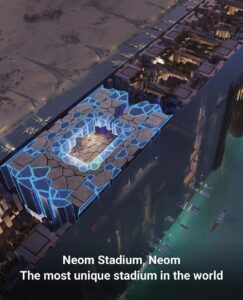 विशेष रूप से, नियोम स्टेडियम, महत्वाकांक्षी लाइन परियोजना का हिस्सा है, जिसे 350 मीटर ऊँचा खड़ा करने और पूरी तरह से नवीकरणीय ऊर्जा पर संचालित करने के लिए डिज़ाइन किया गया है।